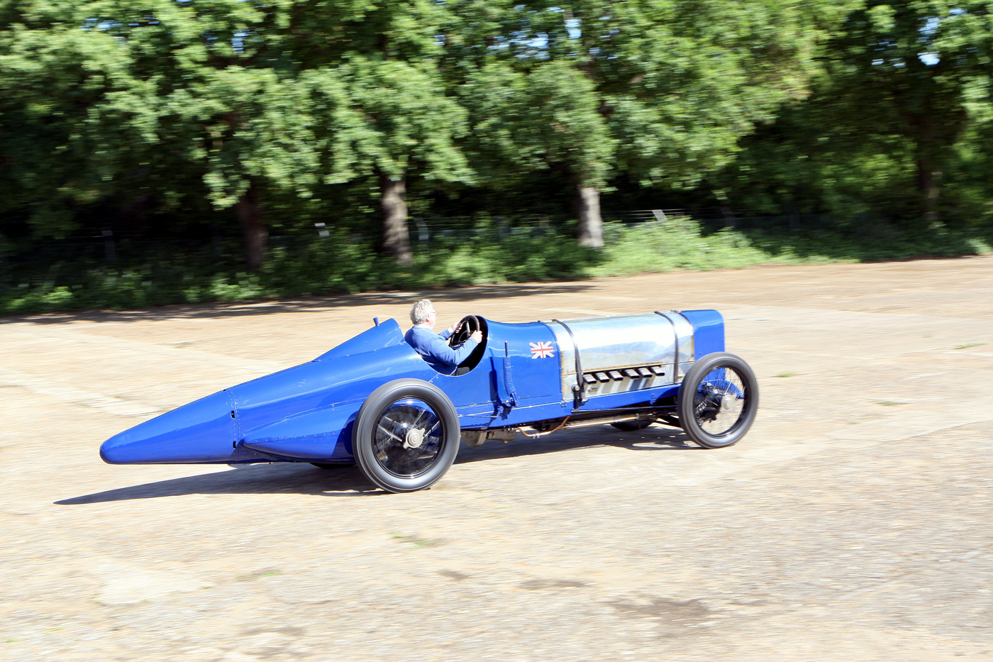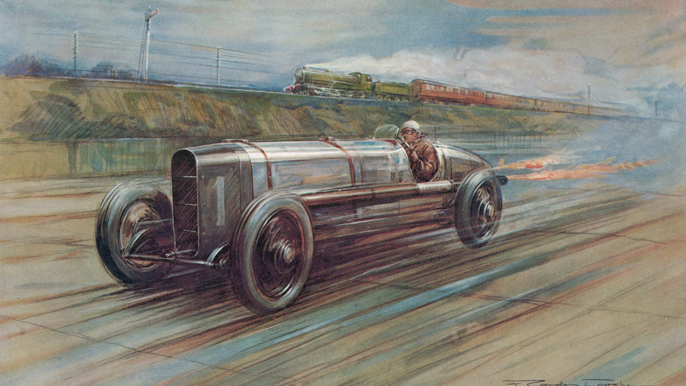 Staged in homage to the F. Gordon Crosby painting of Kenelm Lee Guinness breaking the Land Speed Record driving the 350 HP Sunbeam at Brooklands on the 17th May 1922. The painting was commissioned by ‘The Autocar’ magazine and appeared in the edition of the 22nd February 1929, seen below. Only the trees have changed.
