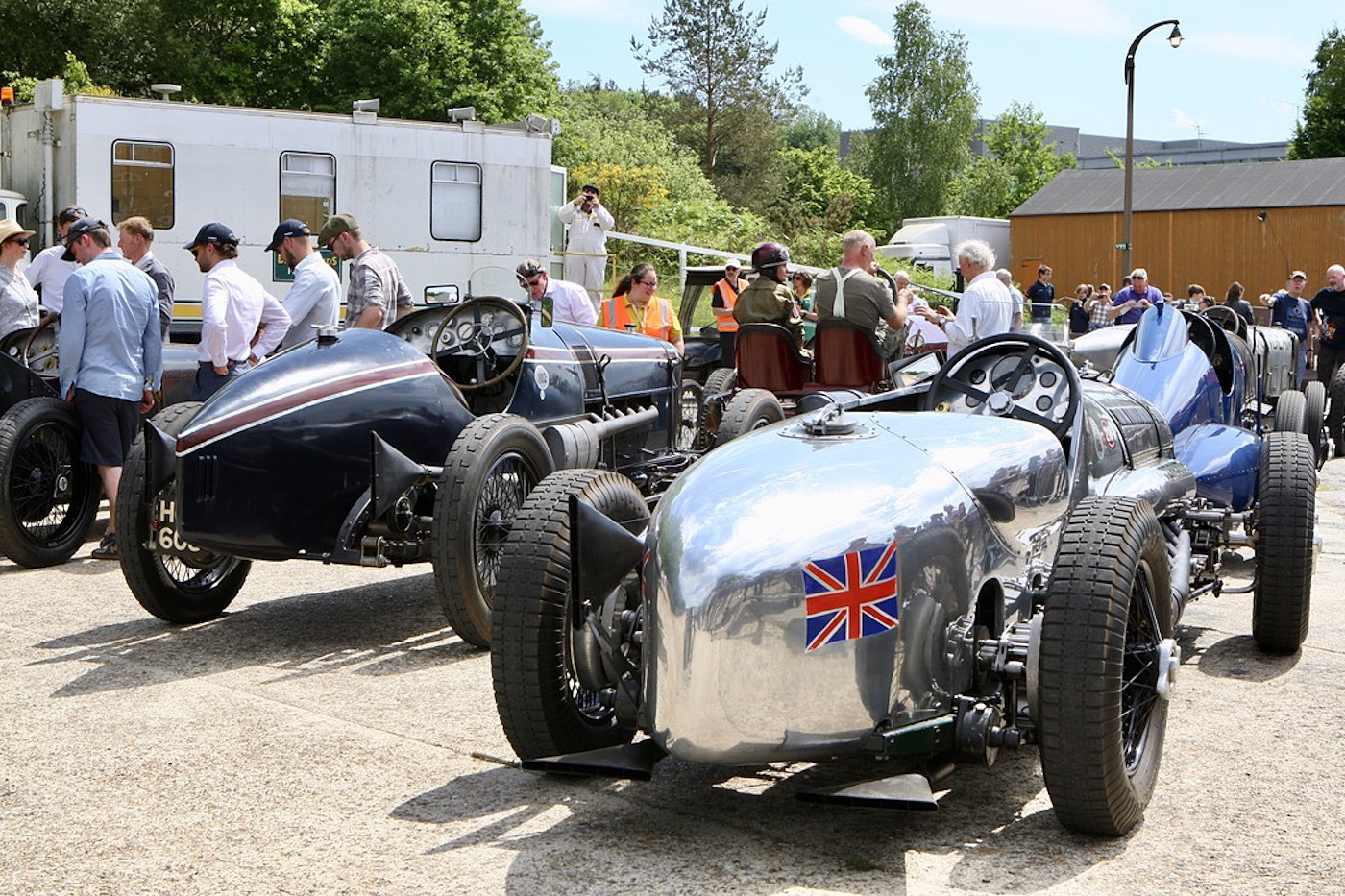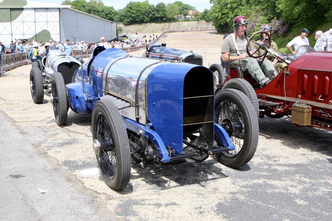Boy what a line up, The Napier Railton and the V12 Delage with the 350 HP Sunbeam in front, all fresh from demo runs on the start/finishing straight.
