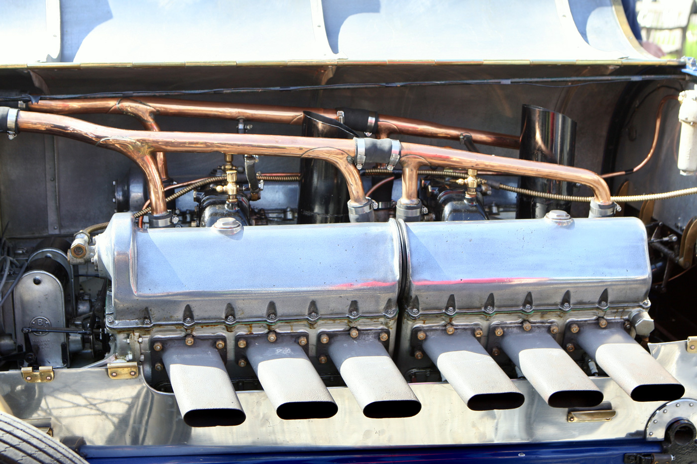 Owned by Andrew Crisford, this 1922 Sunbeam GP Strasbourg is the prototype of one of four cars prepared by the Sunbeam racing department for the 1922 French Grand Prix. The designer of the twin overhead camshaft Peugeot Grand Prix cars before WW1, Ernest Henry was responsible for the Sunbeam GP cars of 1922. Unfortunately all three team cars failed during the race due to rev counter problems which caused the engines to be over rev’d, though the engines later had some success racing at Brooklands.