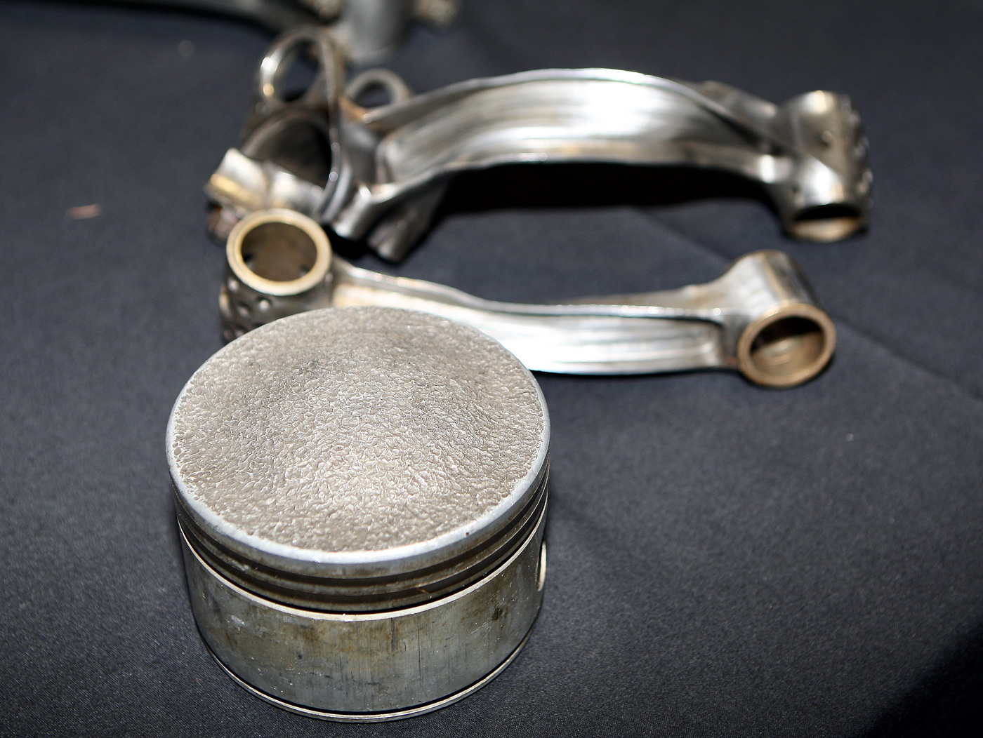 Aluminium pistons, articulated con rods, 7 plain main bearings