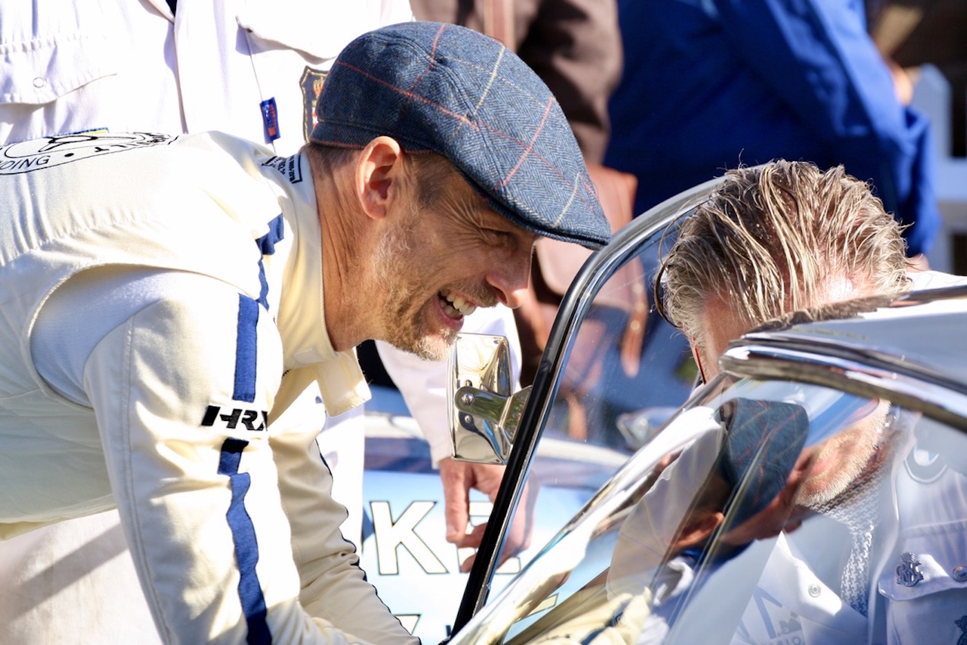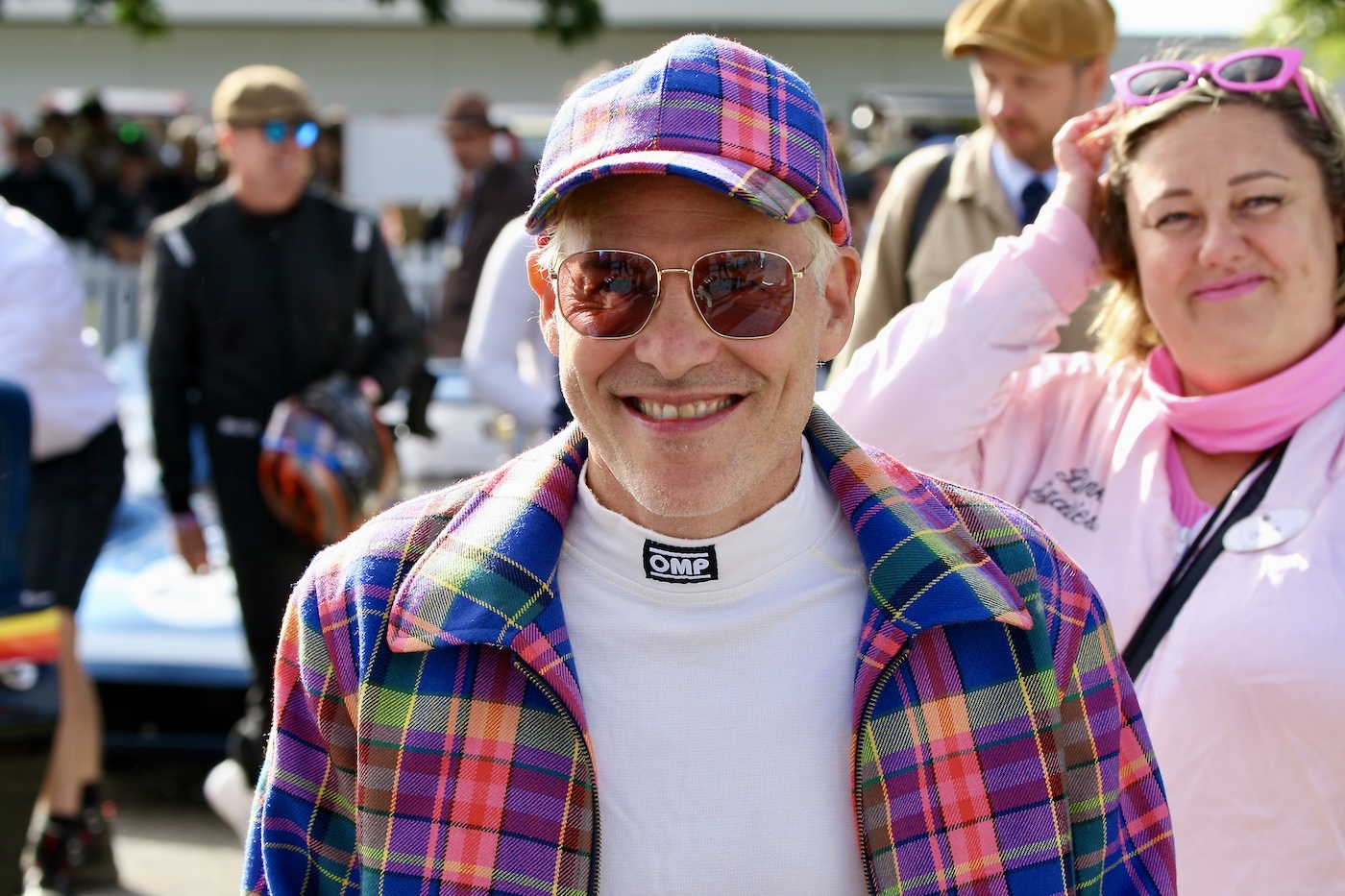 As Jonathan Sharp’s photos began to arrive here, we noticed something different; the smiles that were so dominant at previous Goodwood Festivals and the Revival were not as abundant. There were many, to be sure, like the group shot above, exuding good cheer, but many not.