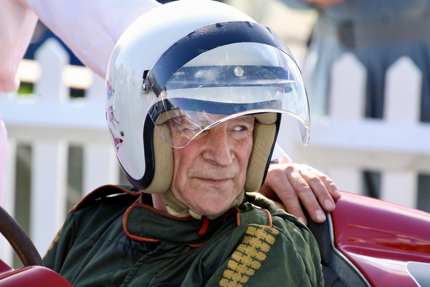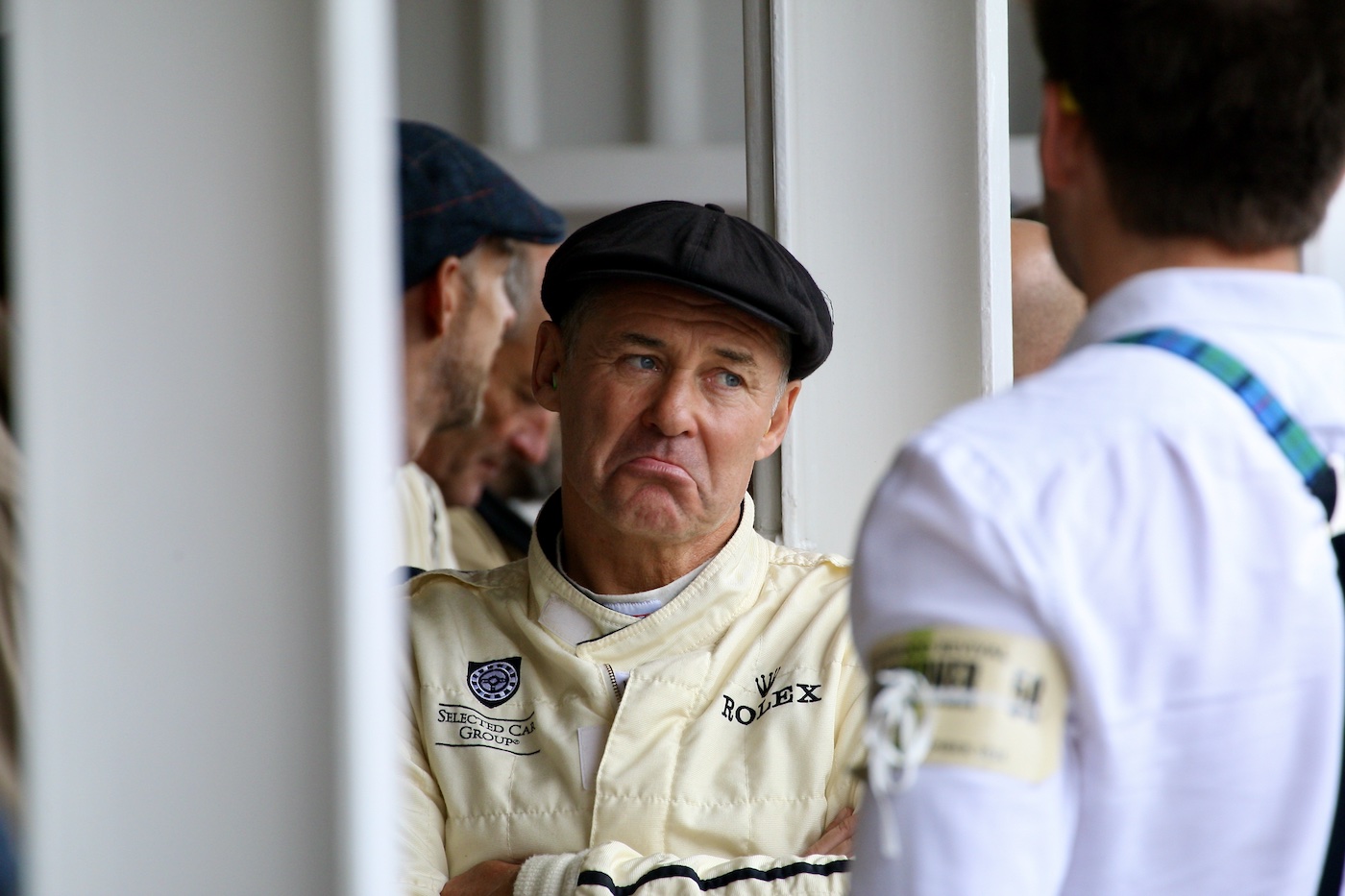 Jim Thorpe. I took the shot just after he had stepped out of the Bizzarrini to hand over to Pirro having driven it in what could best be described as a monsoon during the RAC TT Celebration race.