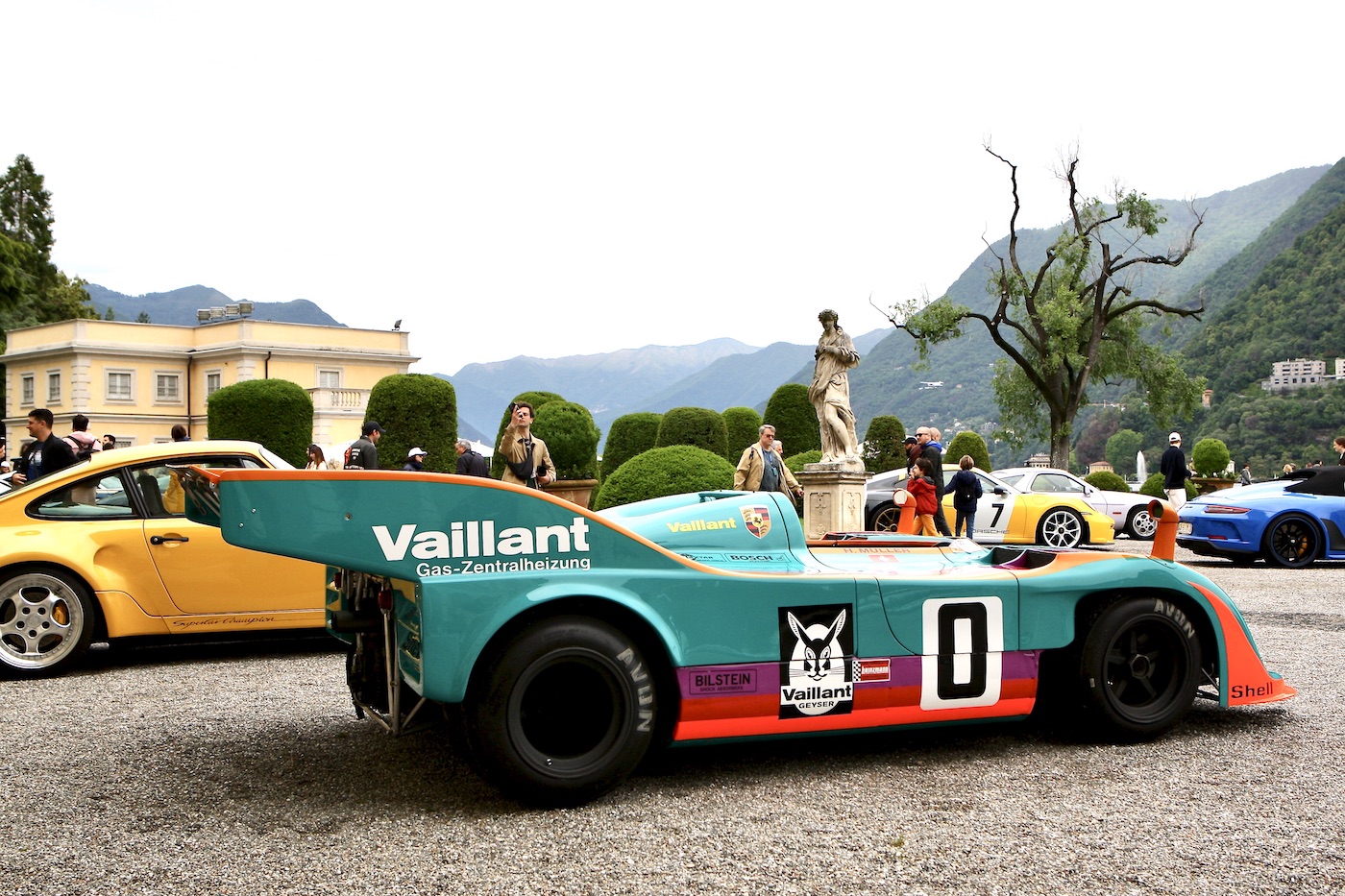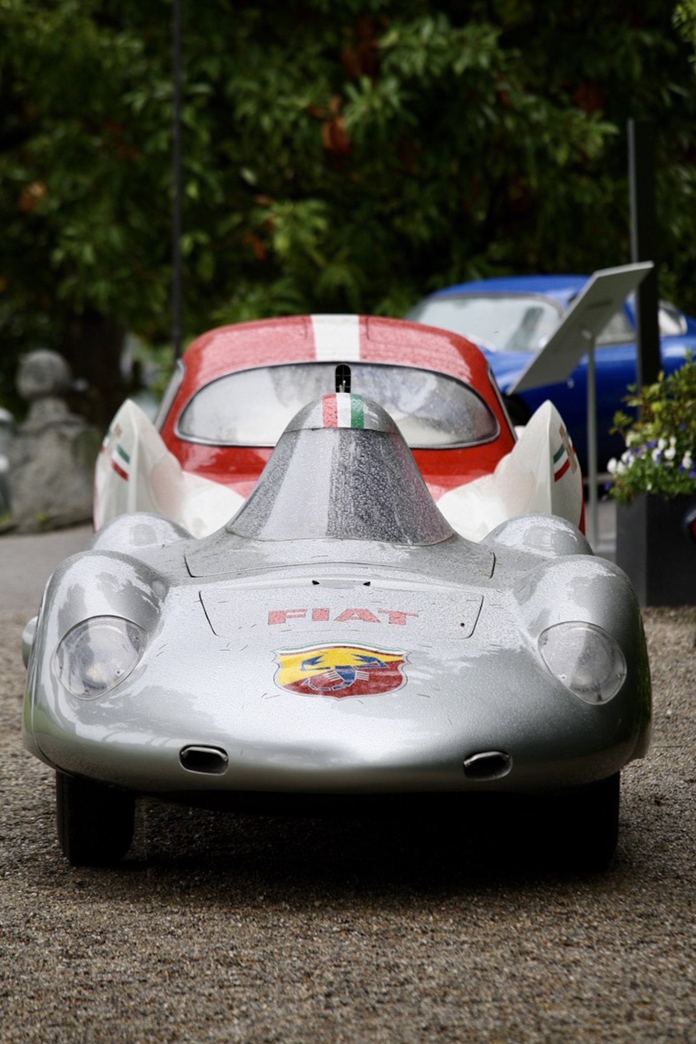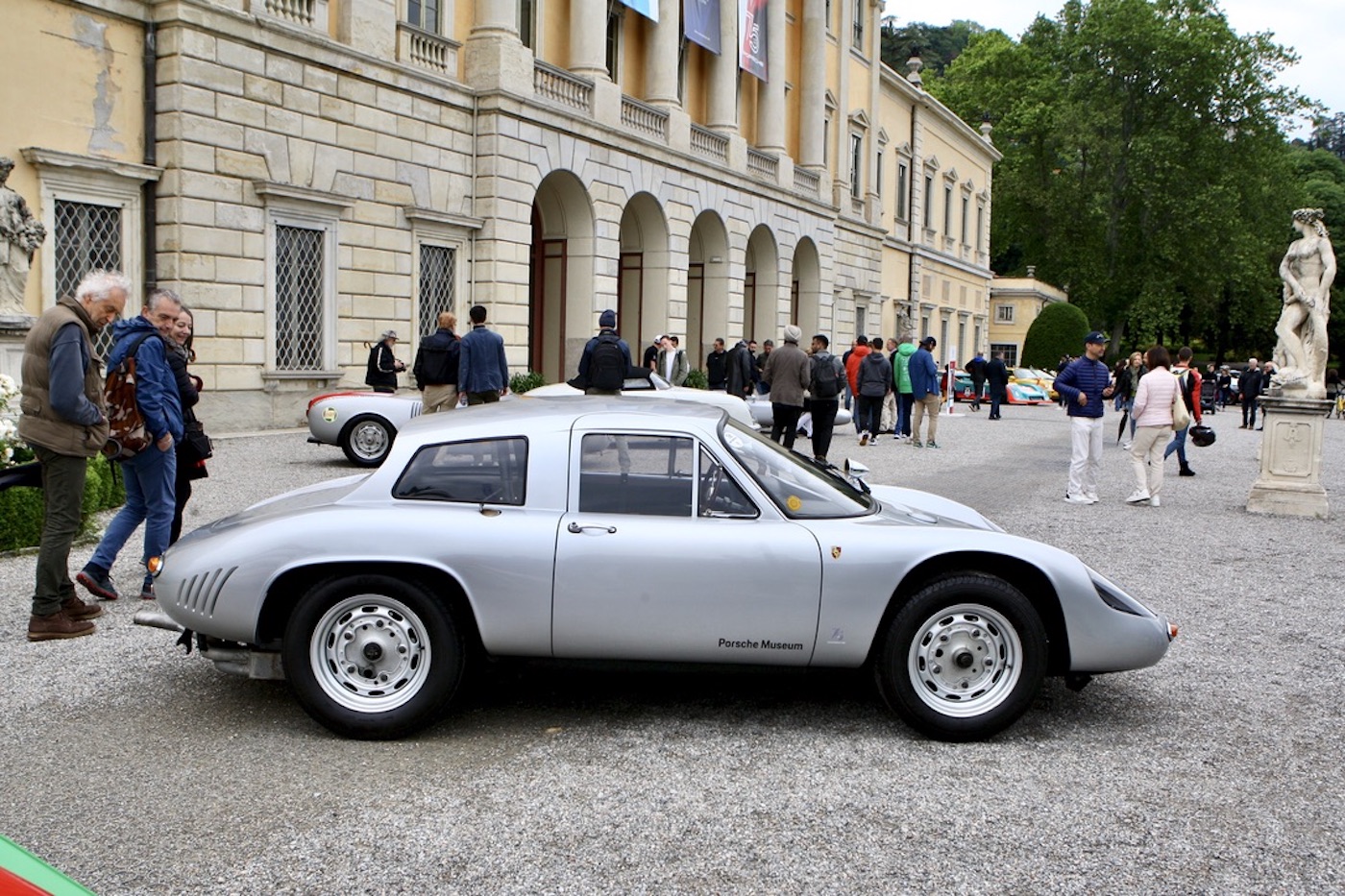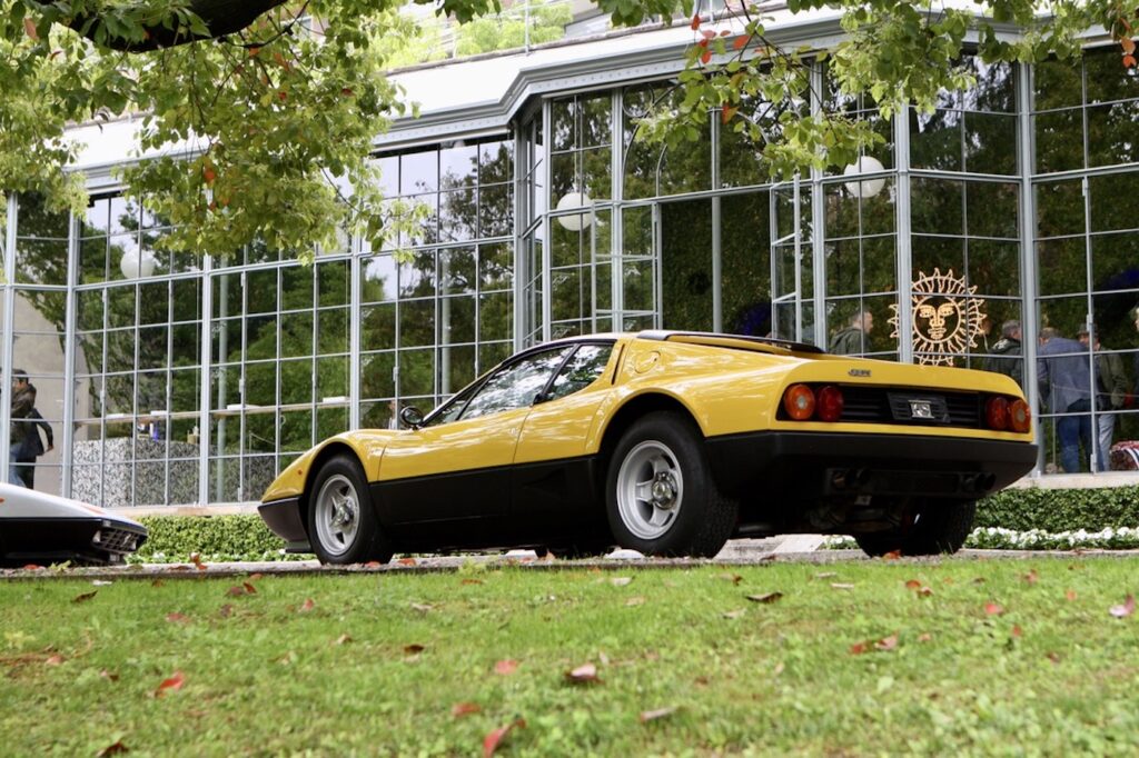 In addition, Villa Olmo, which was free to visit, contained an interesting and varied cross section of racing and road Porsches, many from the factory museum, to celebrate that company’s 75th birthday. Entrance to the main event was at Villa Del Grumello which contained the older vehicles displayed at various locations around the garden. In addition, outside of the St Moritz pavilion towards the top of the gardens, was a display celebrating the 50th Anniversary of the Ferrari BB. It was then but a short walk through the gardens to Villa Sucoto to view the more modern Super/Hyper cars on display in front of the Villa. This also being a life style event, visitors had ample opportunity to enjoy talks on fine wine and coffee, purchase some last minute jewelry, a new MV motorcycle, or some luxury clothing from the Larusmiani Boutique. Whilst the weather was not too kind, our thoughts and prayers throughout the weekend remained for the victims of the flooding in the neighboring region of Reggio Emilia.