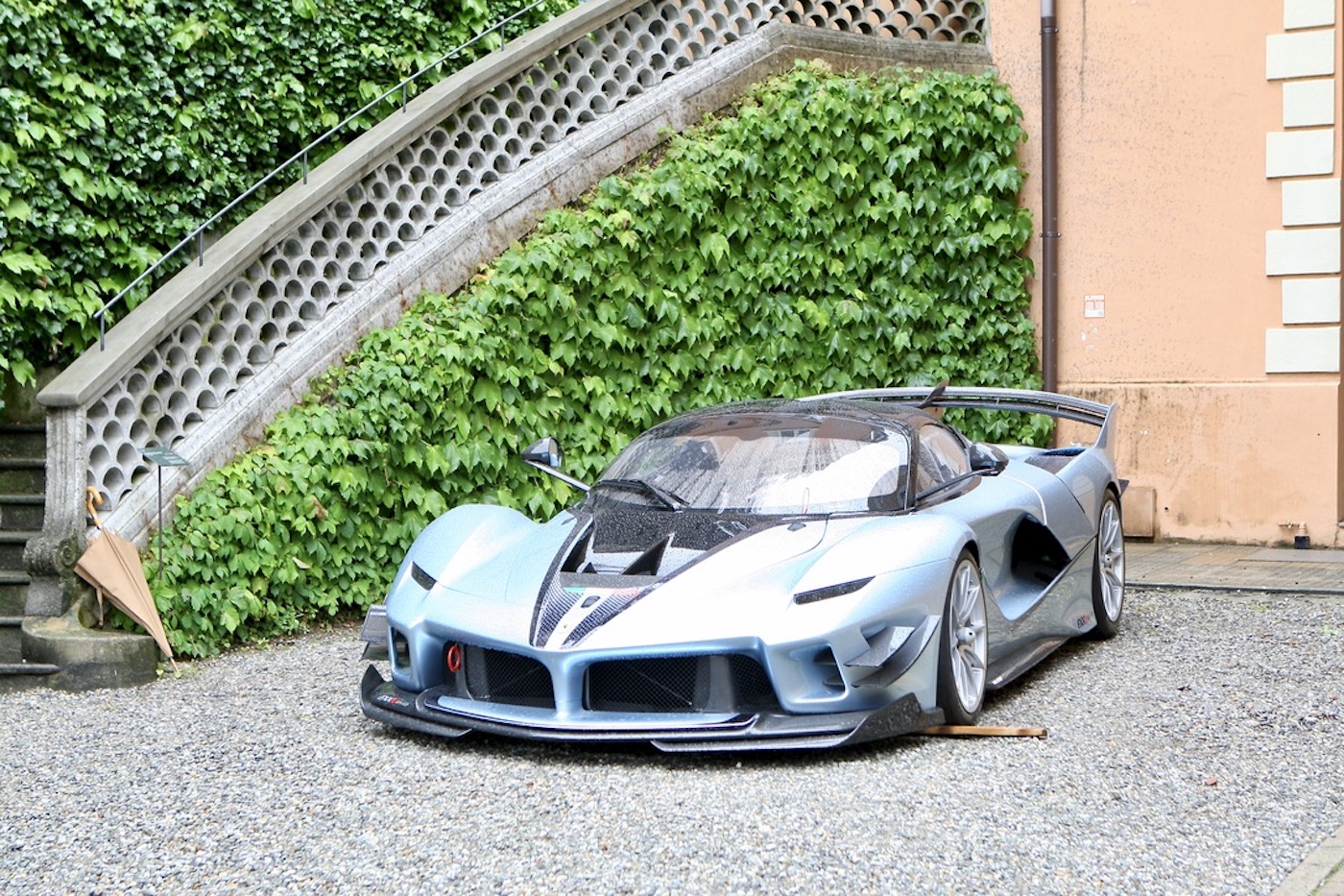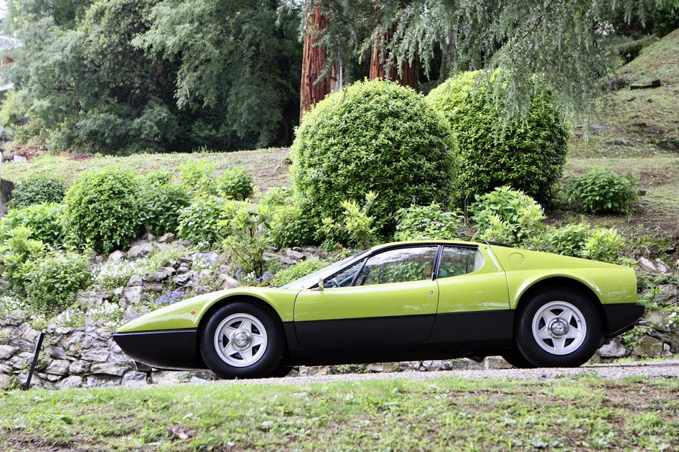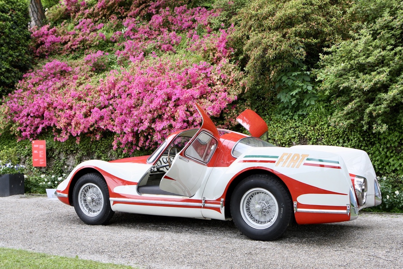 In addition, Villa Olmo, which was free to visit, contained an interesting and varied cross section of racing and road Porsches, many from the factory museum, to celebrate that company’s 75th birthday. Entrance to the main event was at Villa Del Grumello which contained the older vehicles displayed at various locations around the garden. In addition, outside of the St Moritz pavilion towards the top of the gardens, was a display celebrating the 50th Anniversary of the Ferrari BB. It was then but a short walk through the gardens to Villa Sucoto to view the more modern Super/Hyper cars on display in front of the Villa. This also being a life style event, visitors had ample opportunity to enjoy talks on fine wine and coffee, purchase some last minute jewelry, a new MV motorcycle, or some luxury clothing from the Larusmiani Boutique. Whilst the weather was not too kind, our thoughts and prayers throughout the weekend remained for the victims of the flooding in the neighboring region of Reggio Emilia.
