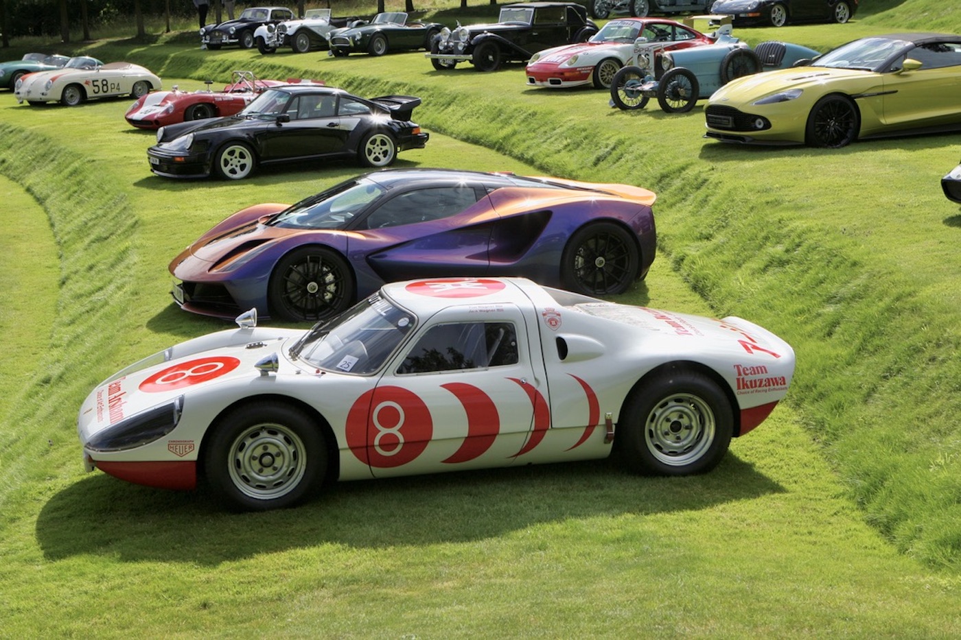 1965 Porsche 904/6. The 2.0 litre flat six engine in this Team Ikuzawa liveried example produces 240 bhp, enough to give some bigger engined racers a run for their money.