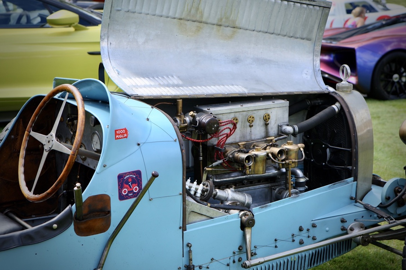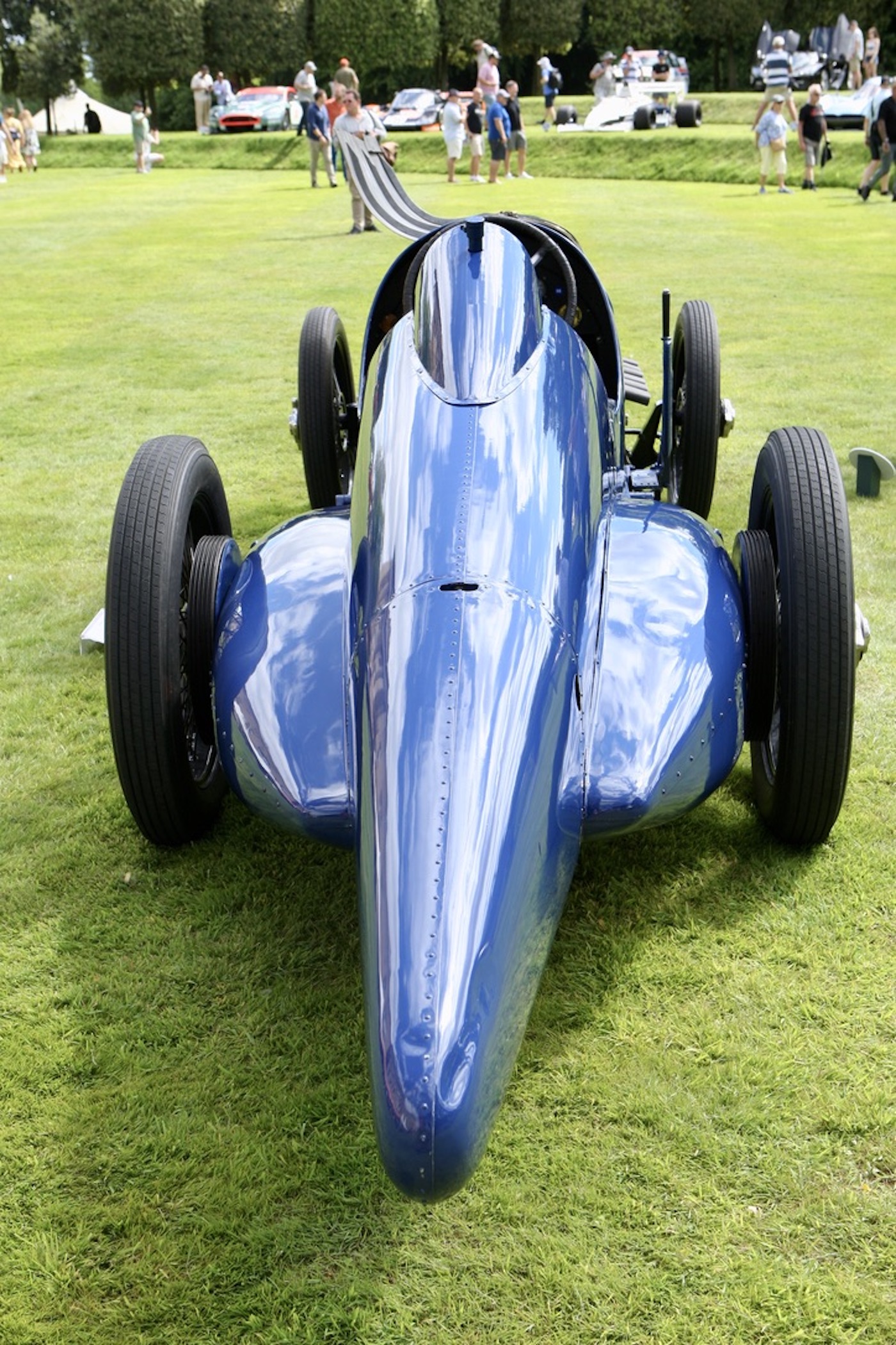 Winner of Best in Show, the 1920 Sunbeam 350HP. Whilst famously known as ‘Blue Bird,’ the 350HP Sunbeam was designed by Louis Coatalen and originally driven by Kenelm Lee Guiness at Brooklands to a new Land Speed Record of 133.75 mph on the 17th May 1922. Malcom Campbell purchased her in 1923 and, together with Leo Villa, set about modifying her, adding the elongated tail and blue paint before taking her to Pendine Sands in South Wales and breaking the Land Speed Record twice, 146.16 mph on the 25th September 1924, and 150.76 mph on the 21st July 1925.