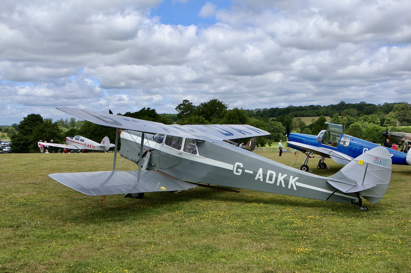 1928 Travel Air 4000 Hornet Moth, At the start of the war all private aircraft in the UK were requisitioned by the British Government. G-ADKK, built as a DH87A in 1935 but updated to DH87B spec in 1936, was allocated U-Boat spotting duty by the RAF but was later moved to 1 Photographic Reconnaissance Unit based at Heston. It then shuttled between Heston and RAE Farnborough during the testing of the cameras that were fitted to the first of the photo reconnaissance versions of the Spitfire. After the war G-ADKK was purchased by the circus impresario Cyril Bertram Mills, who used to fly himself around Europe seeking out new circus acts.