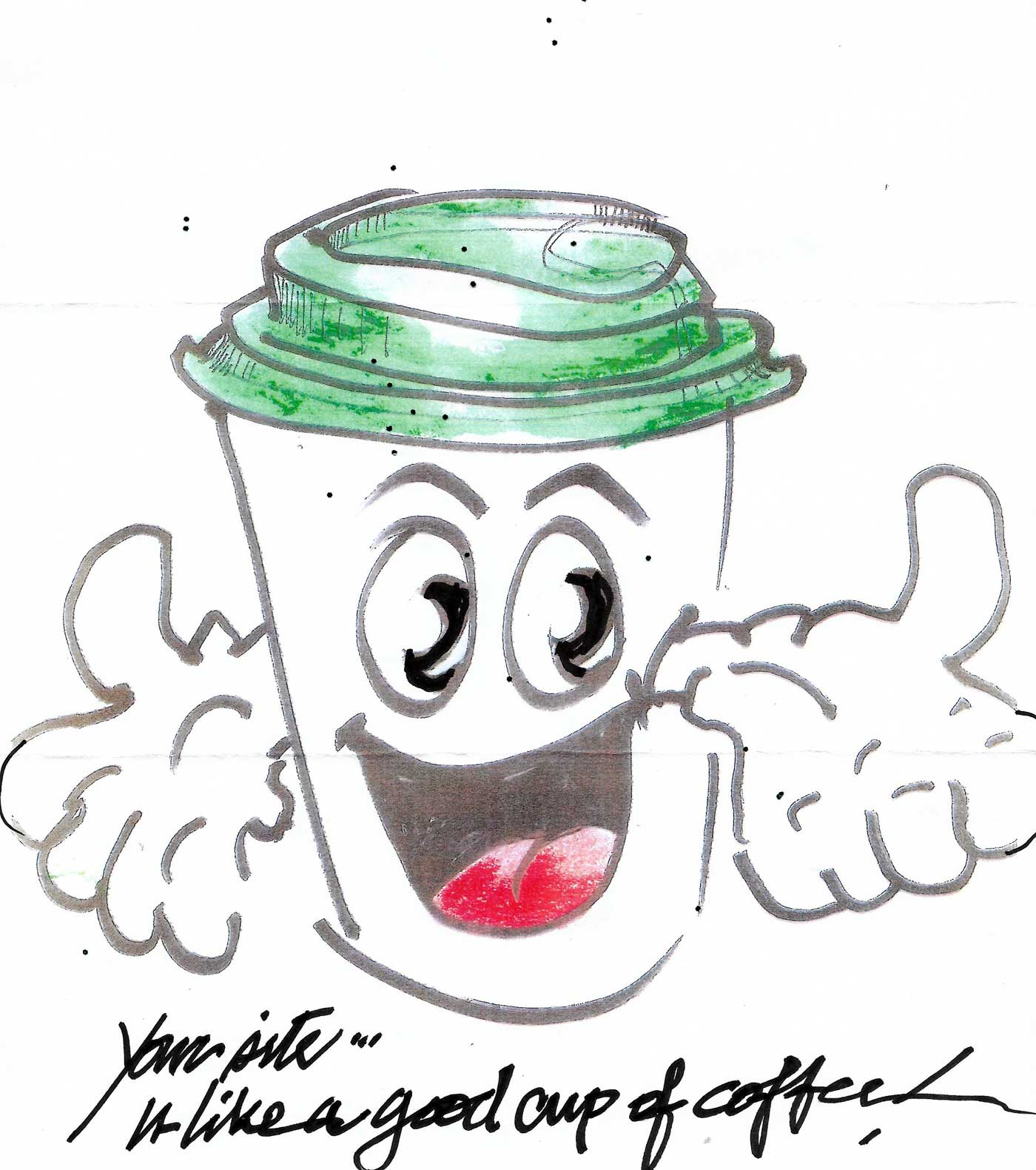 Referring, we hope, to the VeloceToday site is this drawing. Wrote Ernie, “Art is part of every day and as mentioned my “Mail Art” is my way of ‘having a cup of coffee with you’ and knowing time spent on Mail Art is a gift of time from the sender.”