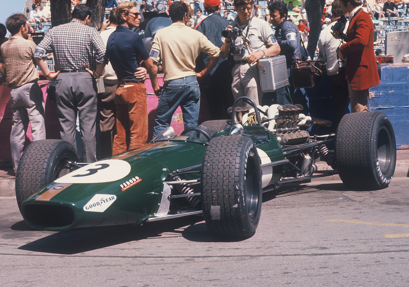 The Brabham Repco by Jochen Rindt ready for the race. He qualified fifth on the grid, 1.29.2, and was out of the race at lap 8.