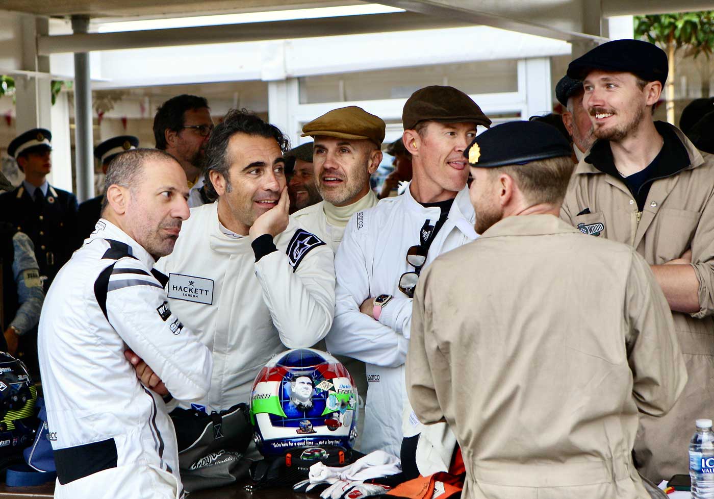 As Jonathan Sharp’s photos began to arrive here, we noticed something different; the smiles that were so dominant at previous Goodwood Festivals and the Revival were not as abundant. There were many, to be sure, like the group shot above, exuding good cheer, but many not.