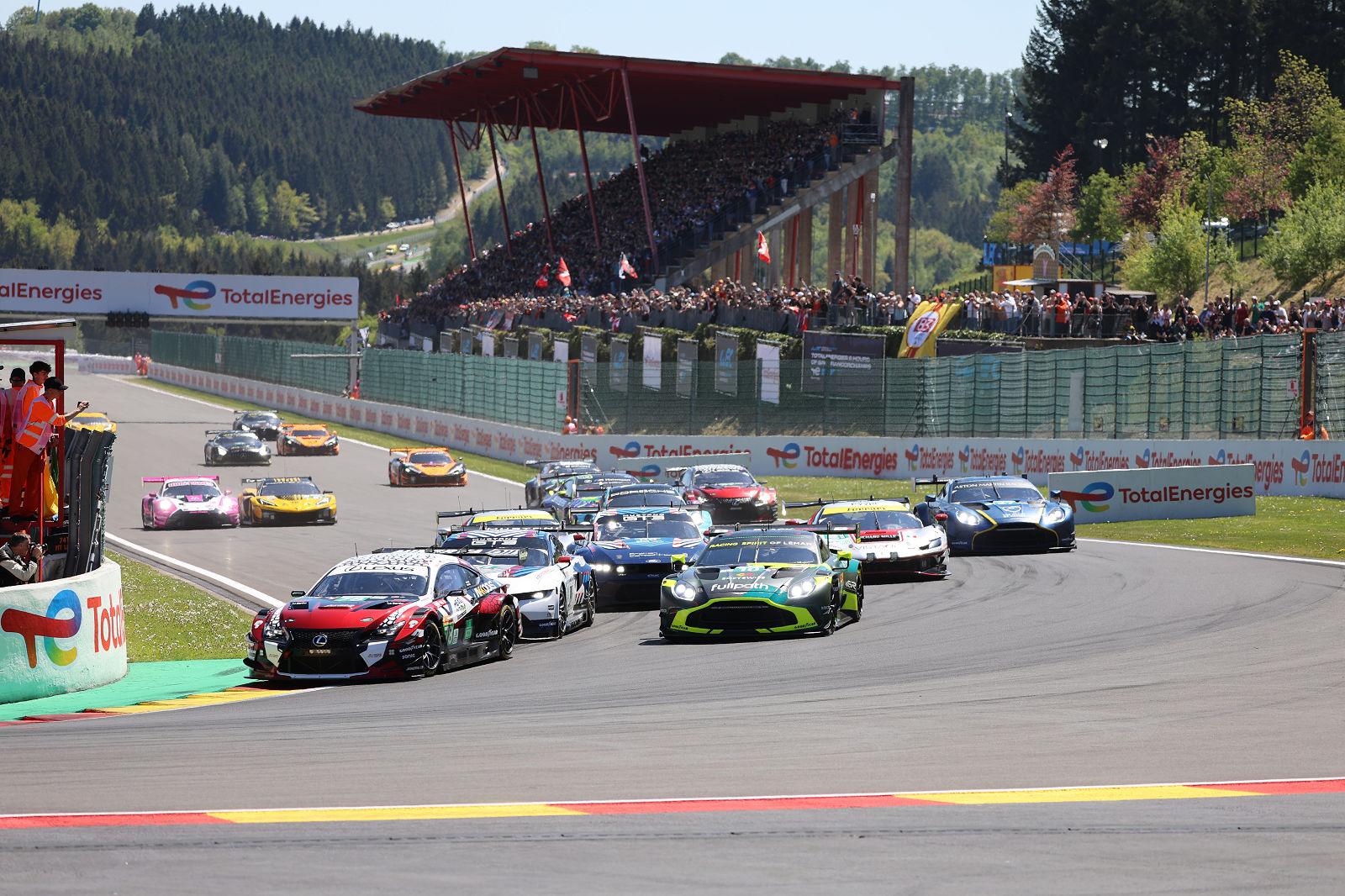 LMGT3 had an uneventful start with the practice hierarchy being respected at the first corner, with the #78 Lexus RC F on pole position taking the lead ahead of the #10 Aston Martin and the #77 and #78 Ford Mustangs.