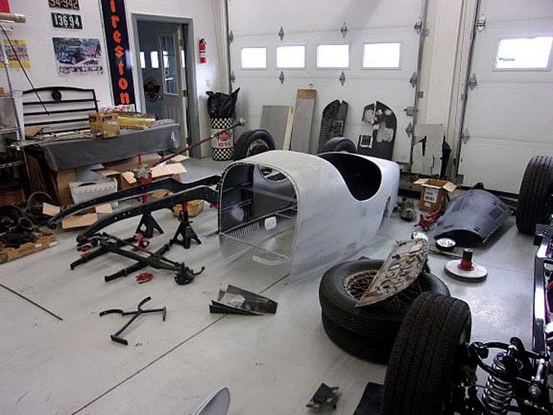 Unfortunately, years of not being used and some stop-gap measures including such things as a plastic jerry can for a fuel tank and only the dash panel separating the passengers and the engine compartment as there was no longer a firewall, rendered the car unusable. At this point, the decision was made to do a full frame-off restoration. (All photos of the restoration work are courtesy of Jim Lowry’s Restoration.)