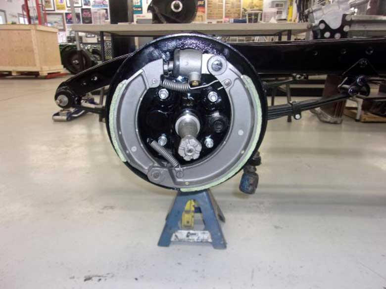 Chassis in restoration. When Peter got the car the front shocks were missing. Charlie Blais, a friend of Peter’s and a great machinist, fabricated new ones for us from the photos. He also did some work rebuilding the rear end.