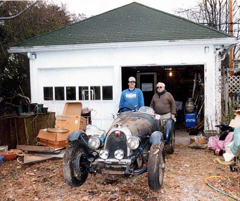 At left, George Lymber’s son Tony with John Gianella, who sold the car to George Lymber and had so carefully and thankfully preserved the Caswell BNC. George Lymber photo.