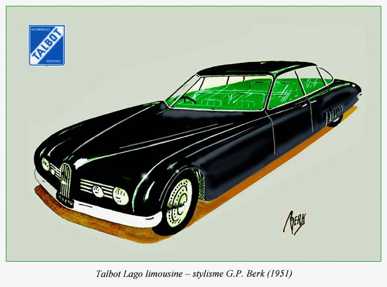 Design for a Lago-Talbot Limosine.jpg In the early nineteen fifties the 4.5 liter six cylinder Lago-Talbot Record could be bought with a four- door factory saloon body. But that was quite similar to two-door Coach Profilé and offered the same, rather limited, interior space. Both were built on identical chassis with a wheelbase (3.200 mm /126.0 in). However, up till 1940 Talbot also sold a long wheelbase (3.450 mm / 135.8 in) chassis. This would have been ideal for a roomy and luxurious limousine, which could compete with the newly introduced Jaguar MK VII. Hence my design.