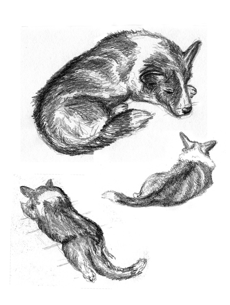 Cars were not my only favored subjects. I always liked to draw animals as well. This is a sketch of one of our Corgis. We had three of them and they were all lovely companions.