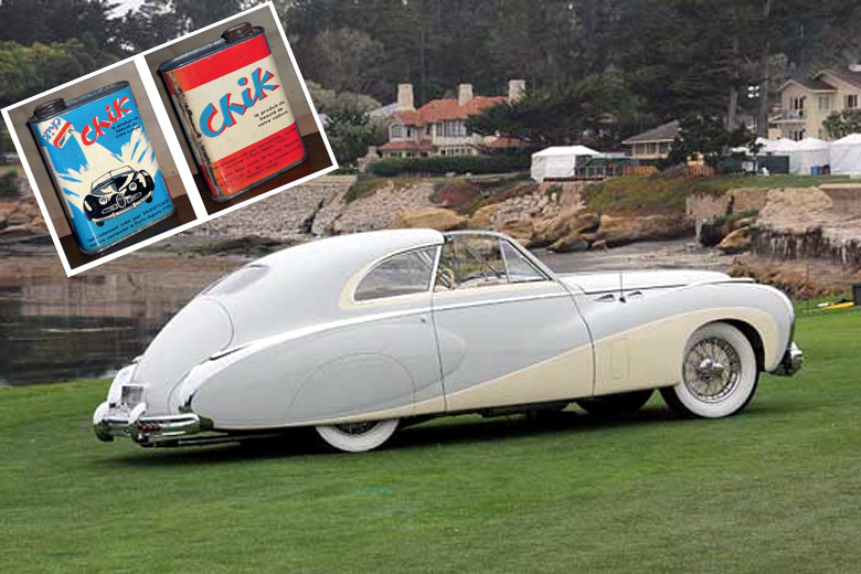 These two different samples with a drawing of a gleaming car and in large letters ‘Chik’ and in a smaller cast ‘Saoutchik’. He told me that he intended to launch this product on the market and added, “Nowadays most car owners drive themselves. Only very few still have a chauffeur to wash and maintain their cars as was common before the war. And a great number of cars remain in the street at night instead of in a garage. I have asked around and I am convinced that we can sell this high quality polish. It is easy to apply, restores the gloss of the paintwork and protects it at the same time. By presenting the product as ‘Chik’ we hope to profit from the well-known name and excellent reputation of our coach building house Saoutchik.”
